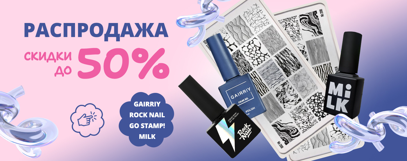 Скидки до 50% на ТМ Gairriy, Milk, Rock Nail и Go Stamp!