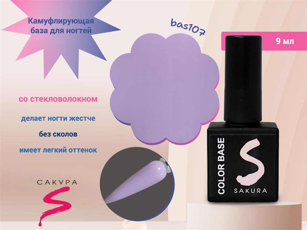 Камуфлирующая база для ногтей Sakura BAS107, со стекловолокном, 9 мл
