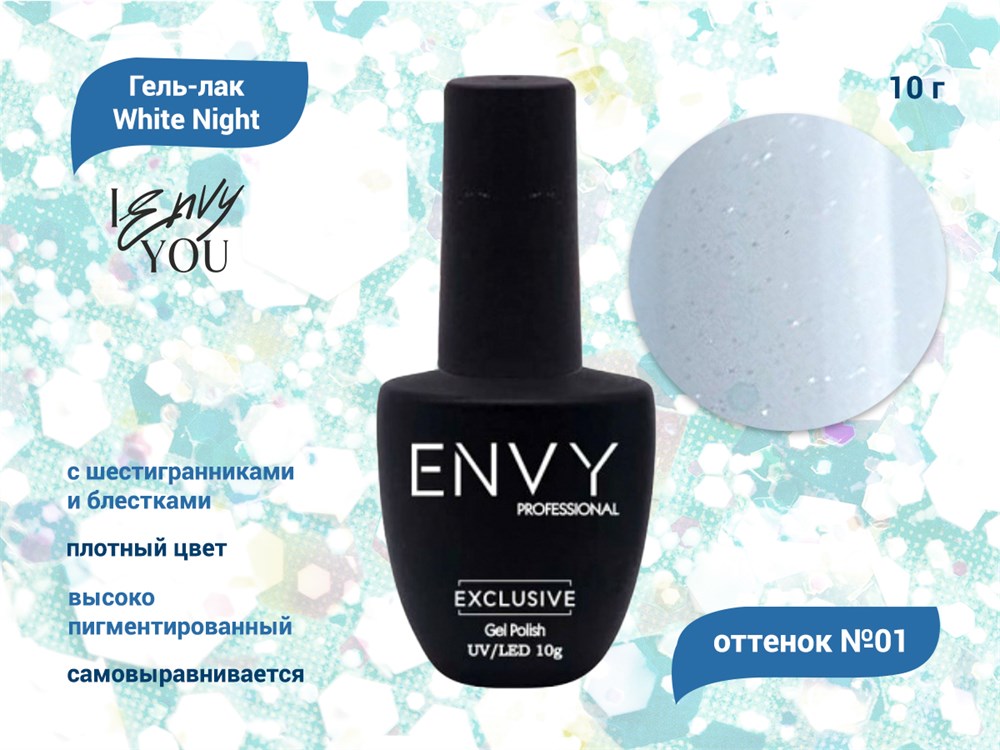White Night - 4 оттенка в тандеме с блестящими шестигранниками и переливающимися блестками.