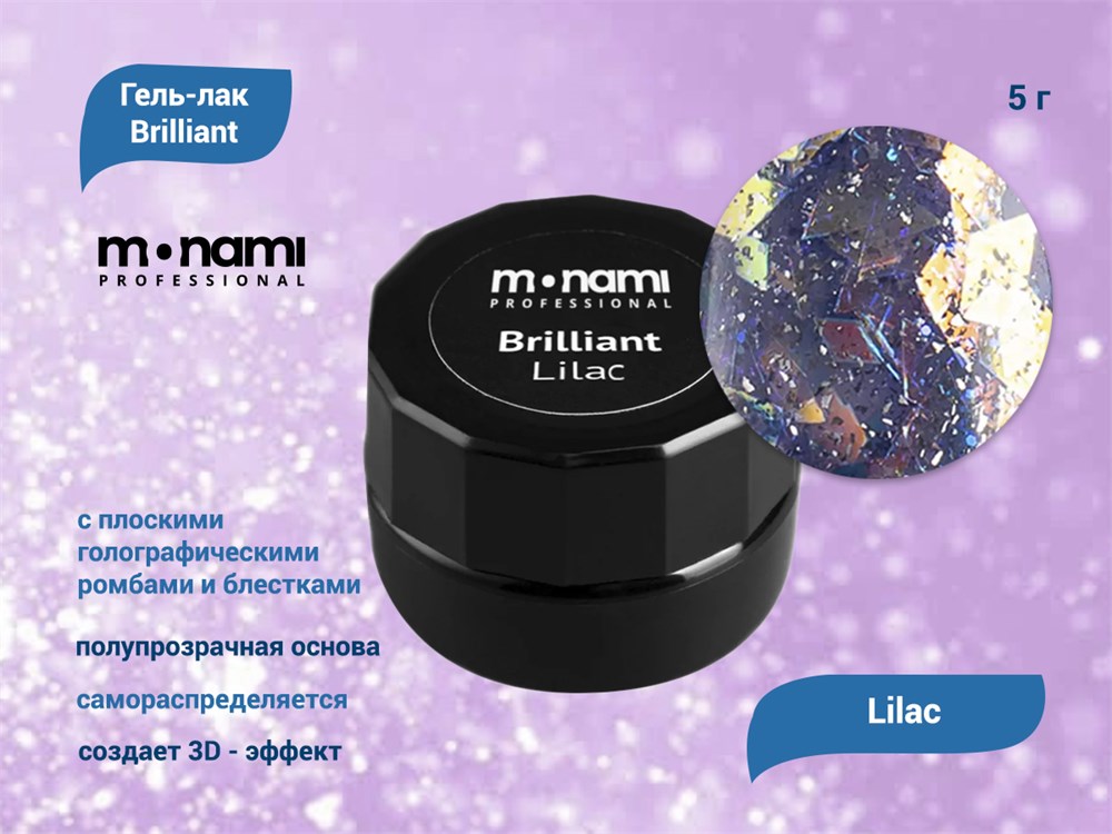 Гель-лак Monami Brilliant. Гелевый лак с плоскими голографическими ромбами и небольшими серебристыми блестками – это двойной удар по однотонному маникюру. Переливы света в гранях ромбовидных блёсток создают 3D эффект. Данный продукт замечательно подойдёт для создания яркого акцента в нейл арте.