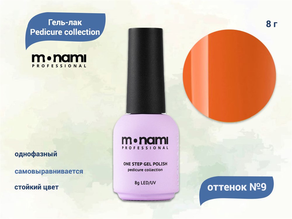 Однофазный гель-лак Monami в оранжевом цвете без переливов – это непревзойденное качество покрытия и стойкость вашего педикюра.
