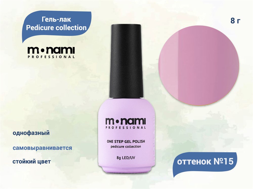 Однофазный гель-лак Monami в нежно-розовом цвете без переливов – это непревзойденное качество покрытия и стойкость вашего педикюра.