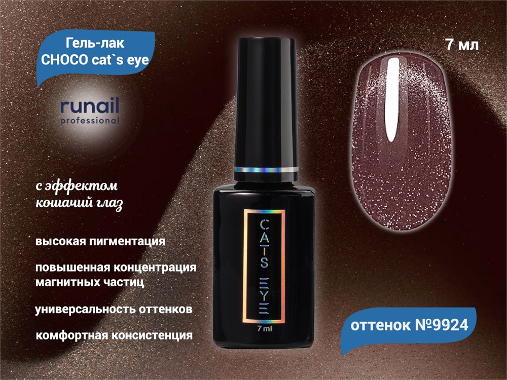 Гель-лак ruNail CHOCO cat`s eye №9924, 7 мл