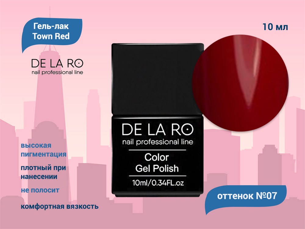 Гель-лак Town Red 07, Delaro, 12 мл