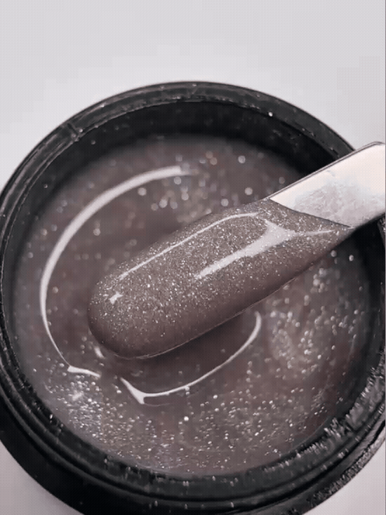 Жесткий камуфлирующий гель темно-шоколадного оттенка с мелким серебряным шиммером. Легко выравнивается, имеет комфортную и приятную для работы консистенцию, не растекается и не уплывает, хорошо держит форму.