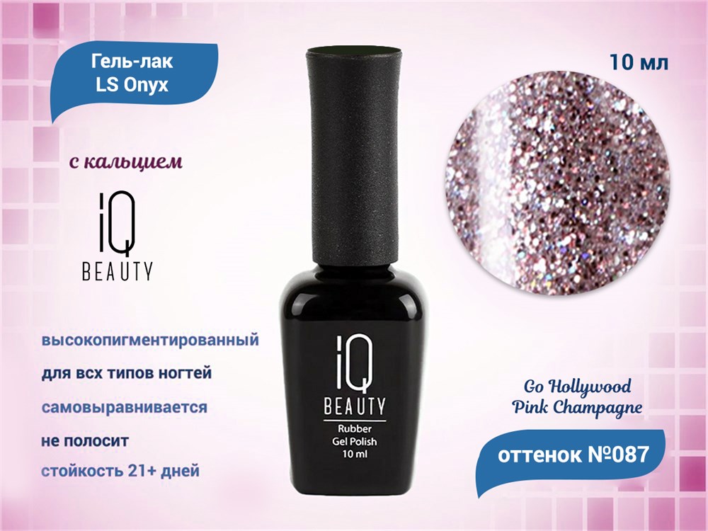 Каучуковый гель-лак IQ BEAUTY №087 с кальцием, GO HOLLYWOOD Pink Champagne, 10 мл