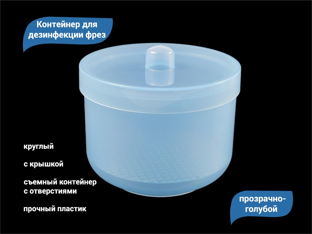 Контейнер для дезинфекции фрез, круглый, прозрачно-голубой