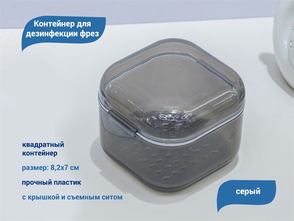 Контейнер для дезинфекции фрез, квадратный, серый