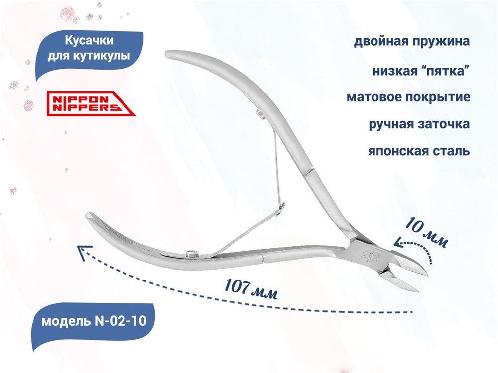 Кусачки для кутикулы Nippon Nippers, двойная пружина, матовые, лезвие 10 мм