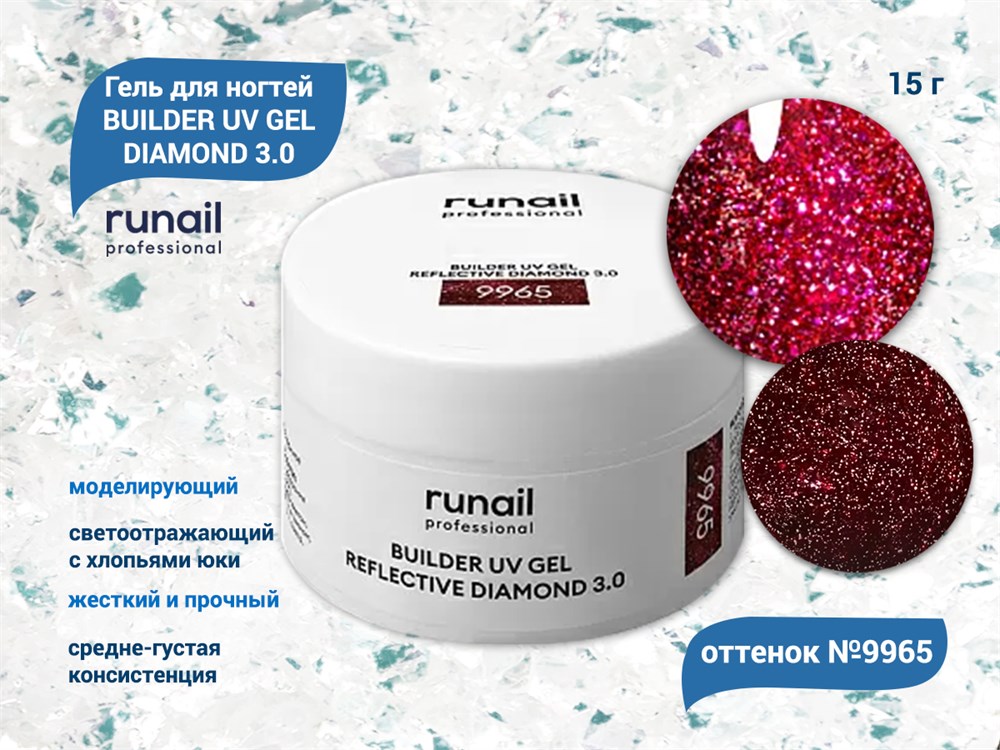Моделирующий УФ-гель ruNail светоотражающий BUILDER UV GEL DIAMOND 3.0, 15г №9965