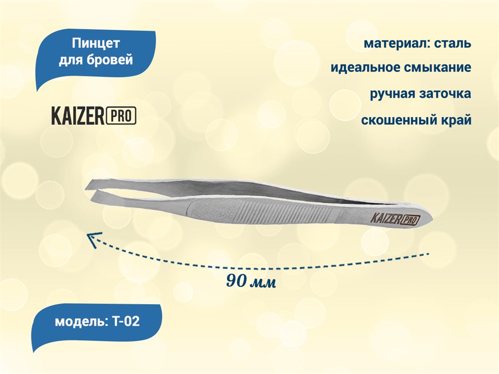 Пинцет для бровей Kaizer, скошенный край, 90 мм