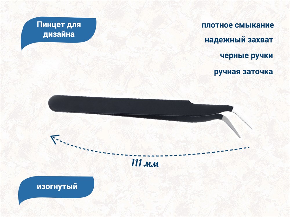 Профессиональный пинцет — это качественный и эстетически привлекательный инструмент, который необходим каждому мастеру. Он изготовлен с использованием ручной заточки. Оптимальная площадь контакта кончиков пинцета обеспечивает их полное смыкание.