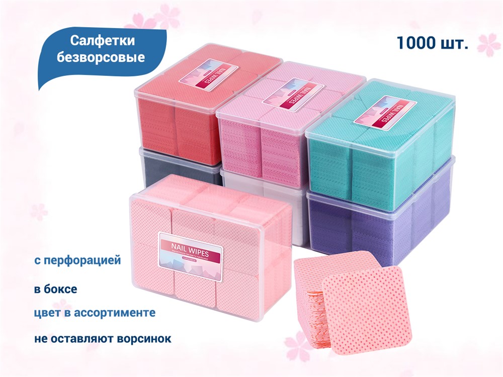 Салфетки безворсовые с перфорацией, в боксе, цвет в асс., 1000 шт.