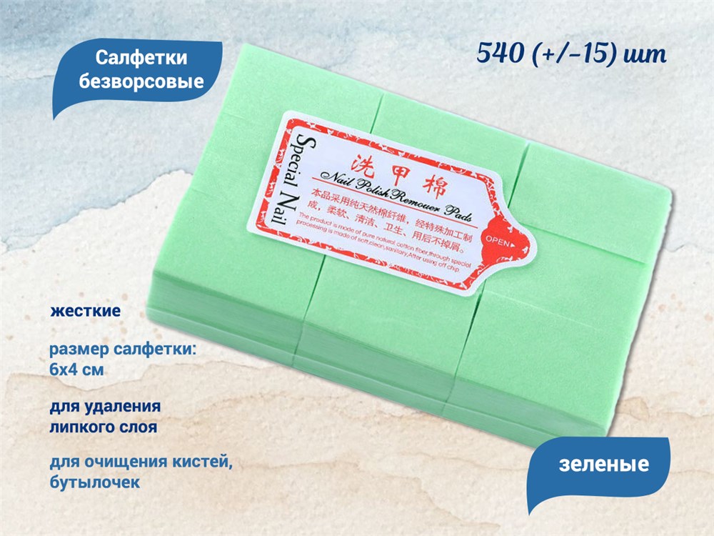 Салфетки безворсовые жесткие, зеленые, 540 (+/-15) шт