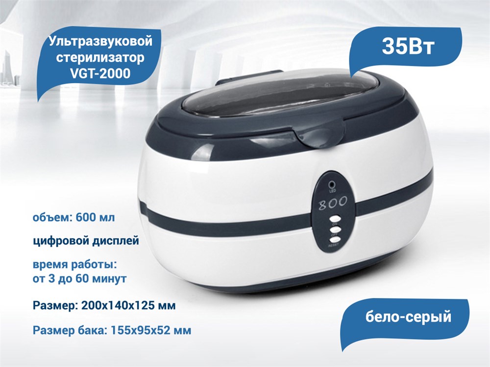 Ультразвуковой стерилизатор VGT-2000, бело-серый, 35 W