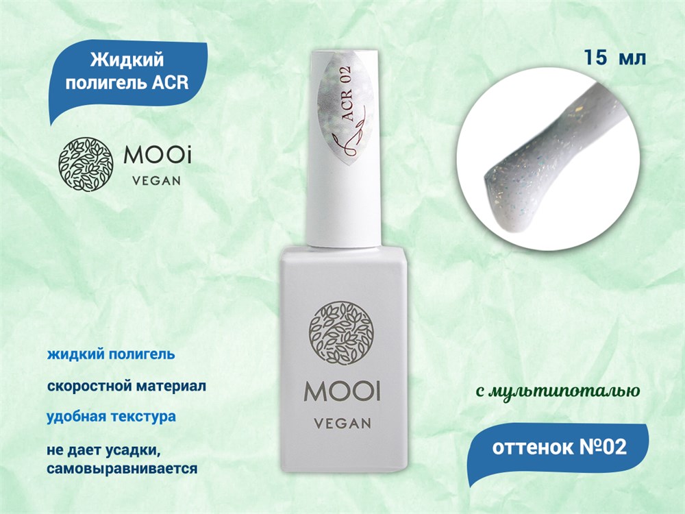 Acrigel Build-Up ACR 02 – жидкий акригель-архитектор с экстрастойкими свойствами в бело-молочном оттенке с мелкой мультипоталью во флаконе с кистью.